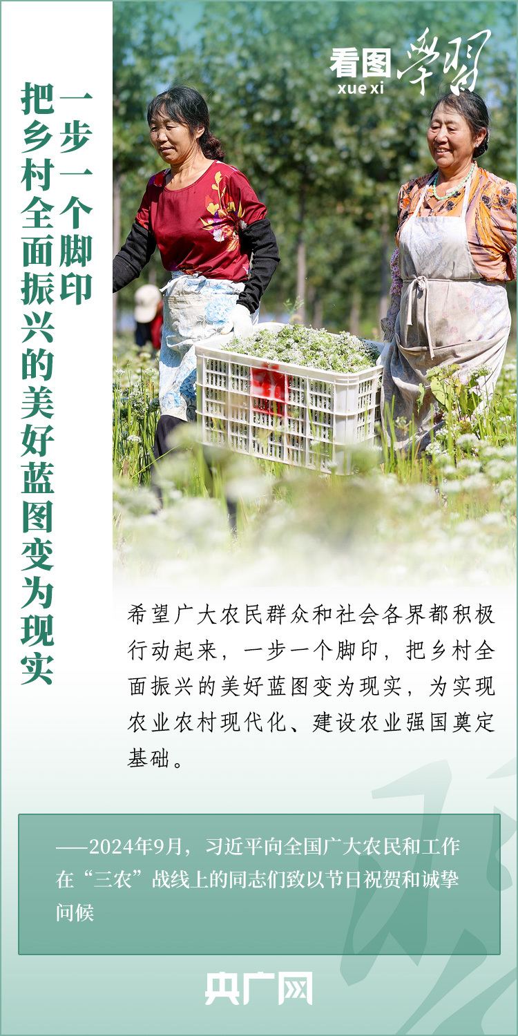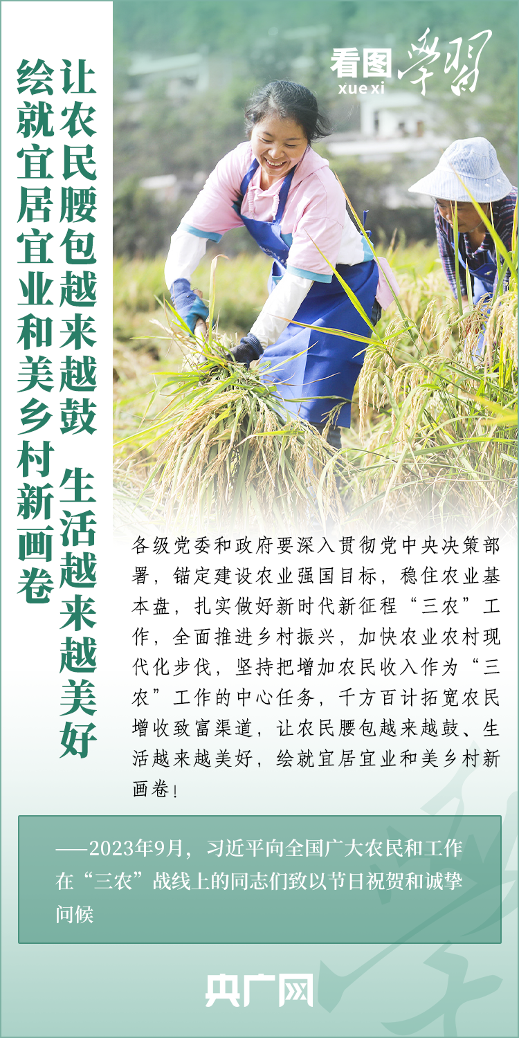民族要復(fù)興,鄉(xiāng)村必振興。黨的十八大以來,每到各地考察調(diào)研,習(xí)近平總書記總會去農(nóng)村看一看,走進田間地頭,和農(nóng)民拉拉家常??倳洀娬{(diào),“建設(shè)宜居宜業(yè)和美鄉(xiāng)村是農(nóng)業(yè)強國的應(yīng)有之義”,“要讓農(nóng)民腰包越來越鼓、生活越來越美好”。