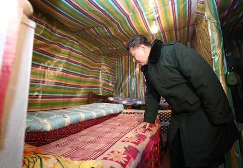 一天之內(nèi),橫跨兩省市,足跡覆蓋農(nóng)村、社區(qū)、學(xué)校等7處考察點,冒著嚴寒而往,沐著夜色而歸,只因“心里一直惦念著災(zāi)區(qū)的人民群眾”。