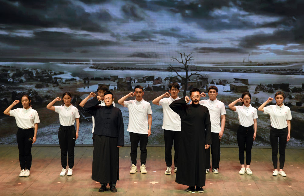 電視劇《覺醒年代》主創(chuàng)團隊走進北京大學(xué),劇中主要演員與北大學(xué)生同臺演出(2021年4月20日攝)。