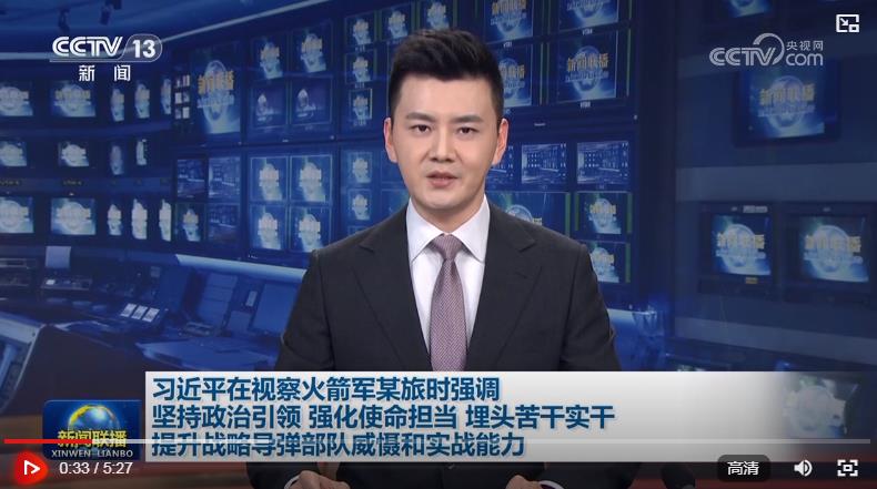 中共中央總書記、國家主席、中央軍委主席習近平17日到火箭軍某旅視察,強調要深入貫徹新時代強軍思想,貫徹新時代軍事戰(zhàn)略方針,把握戰(zhàn)略導彈部隊建設和作戰(zhàn)運用特點規(guī)律,堅持政治引領,強化使命擔當,埋頭苦干實干,推進部隊建設高質量發(fā)展,提升戰(zhàn)略威懾和實戰(zhàn)能力,堅決完成黨和人民賦予的各項任務。