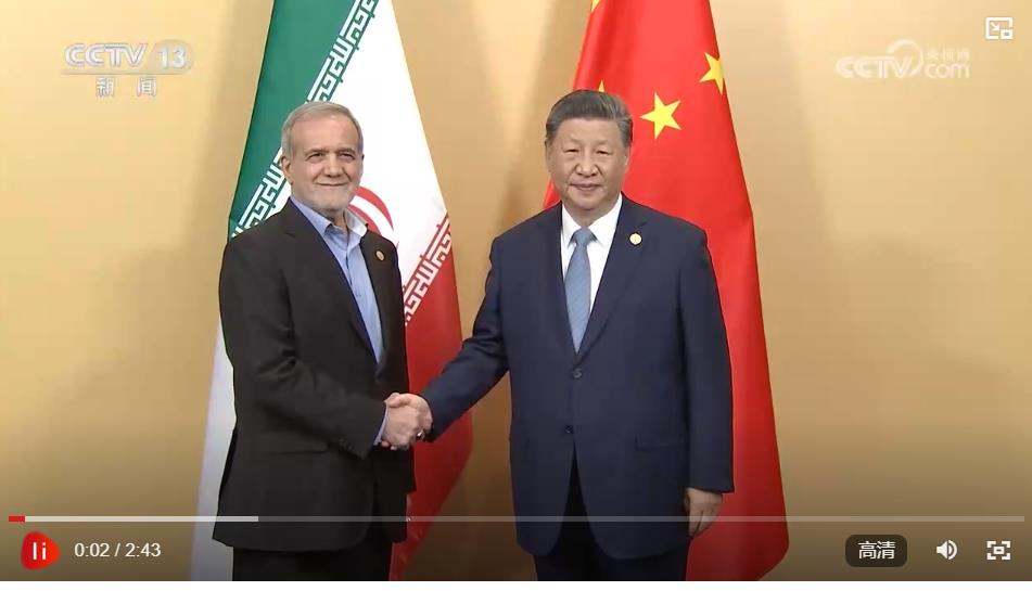 當(dāng)?shù)貢r(shí)間10月23日下午,國(guó)家主席習(xí)近平在喀山出席金磚國(guó)家領(lǐng)導(dǎo)人會(huì)晤期間會(huì)見伊朗總統(tǒng)佩澤希齊揚(yáng)。