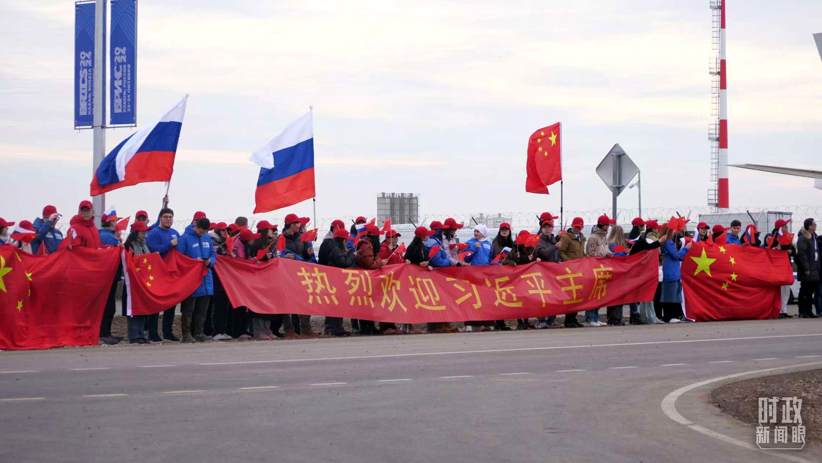 俄羅斯喀山各界人士揮舞中俄兩國國旗,歡迎習(xí)主席到訪。(總臺(tái)記者蔣泓橋拍攝)