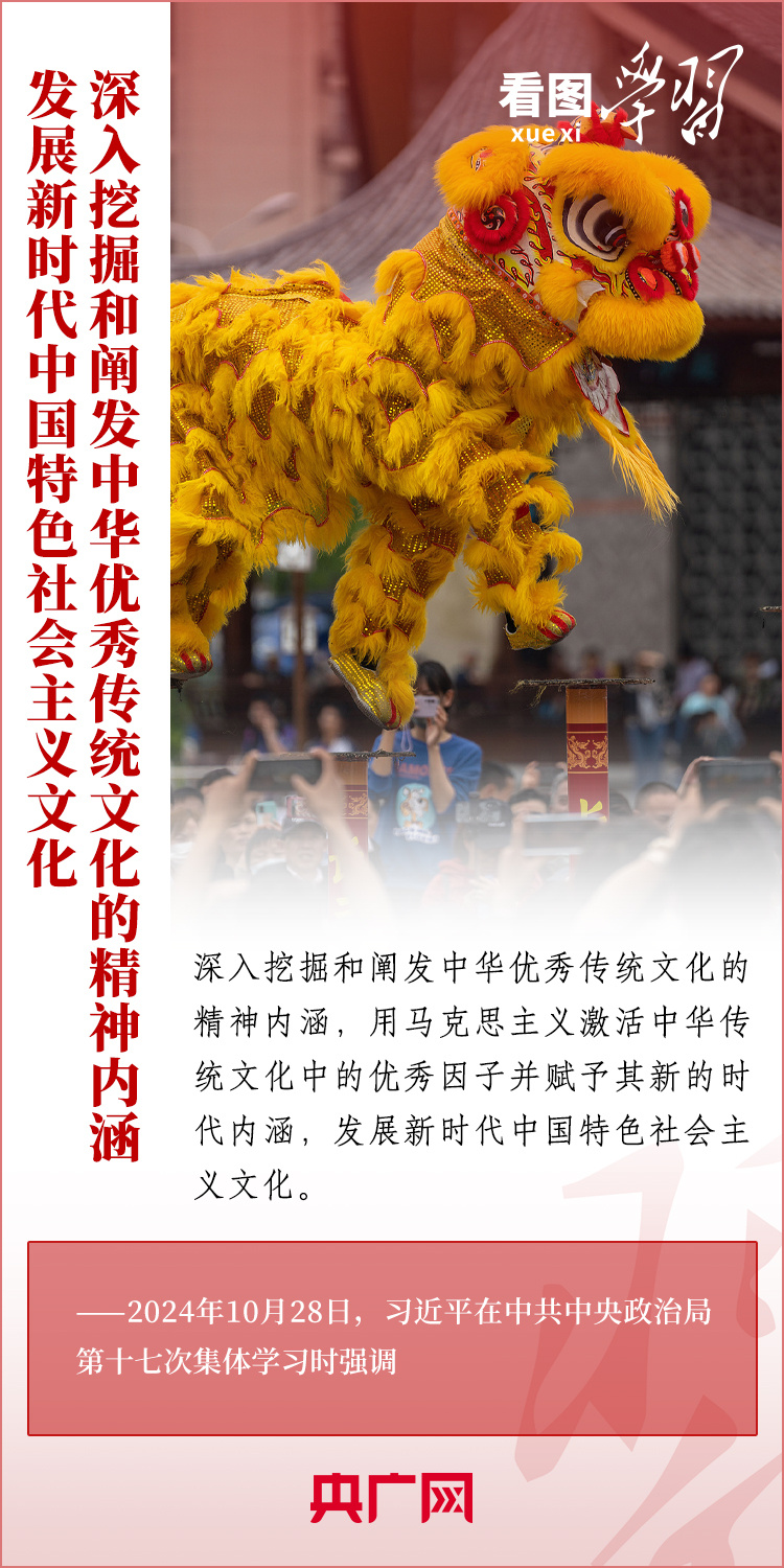 建設(shè)文化強國是全黨全社會的共同任務(wù)。10月28日,中共中央政治局就建設(shè)文化強國進(jìn)行第十七次集體學(xué)習(xí)。習(xí)近平總書記在聽取講解和討論后發(fā)表重要講話,就錨定2035年建成文化強國戰(zhàn)略目標(biāo)作出最新部署,強調(diào)要“不斷發(fā)展具有強大思想引領(lǐng)力、精神凝聚力、價值感召力、國際影響力的新時代中國特色社會主義文化,不斷增強人民精神力量,筑牢強國建設(shè)、民族復(fù)興的文化根基?!币黄饋韺W(xué)習(xí)!