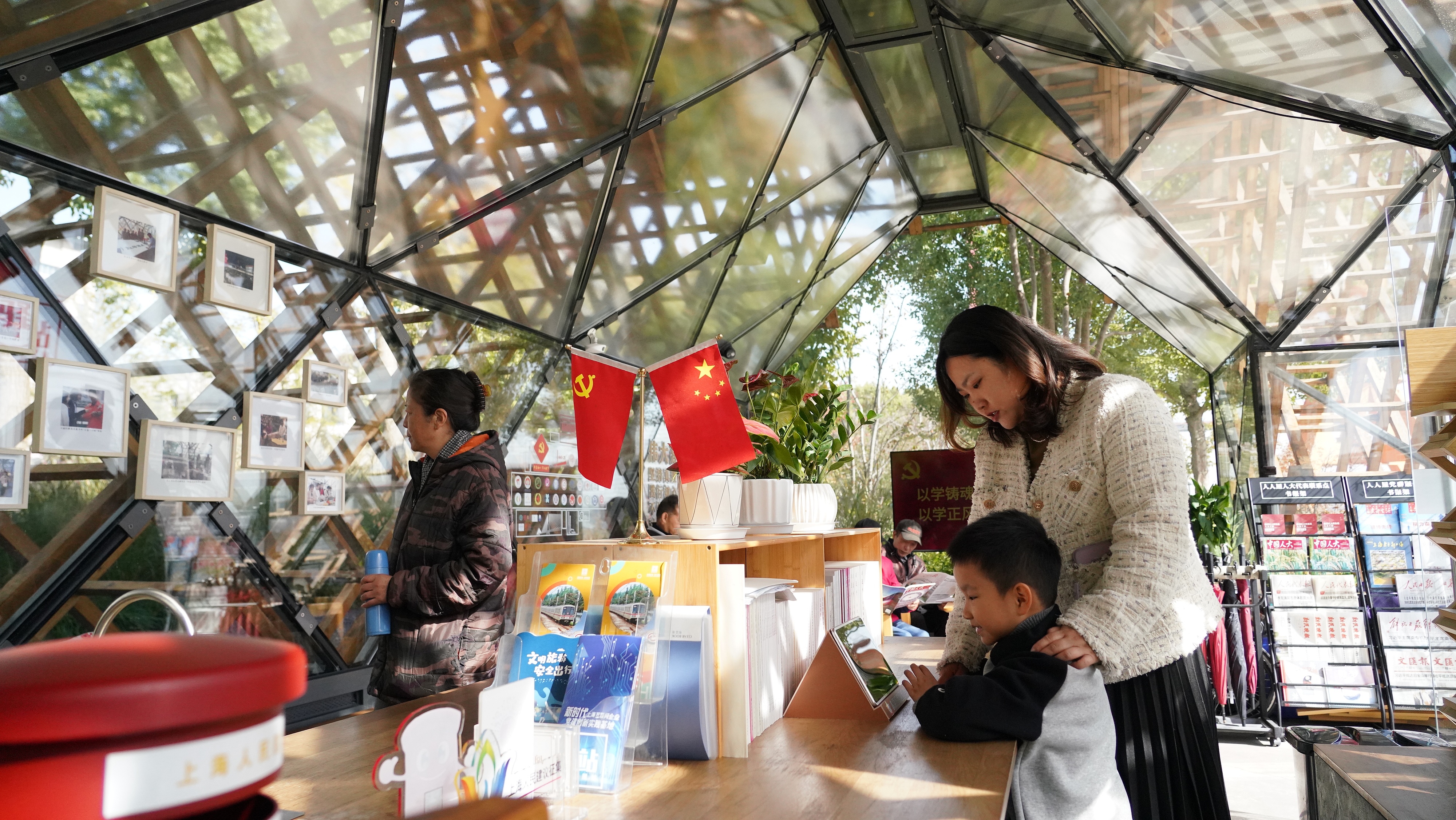 △ 2023年11月17日,上海市民正在位于楊浦濱江岸線的“人人屋”黨群服務站參觀。