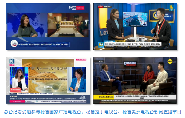 中央廣播電視總臺記者受邀參與秘魯國家廣播電視臺、秘魯拉丁電視臺和當?shù)厥找暵首罡叩拿佤斆乐揠娨暸_新聞直播節(jié)目,介紹《平“語”近人——習近平喜歡的典故》第三季(西班牙語版)內容,帶領當?shù)厥鼙姼形蛄暯街飨玫渲刑N含的中國智慧。