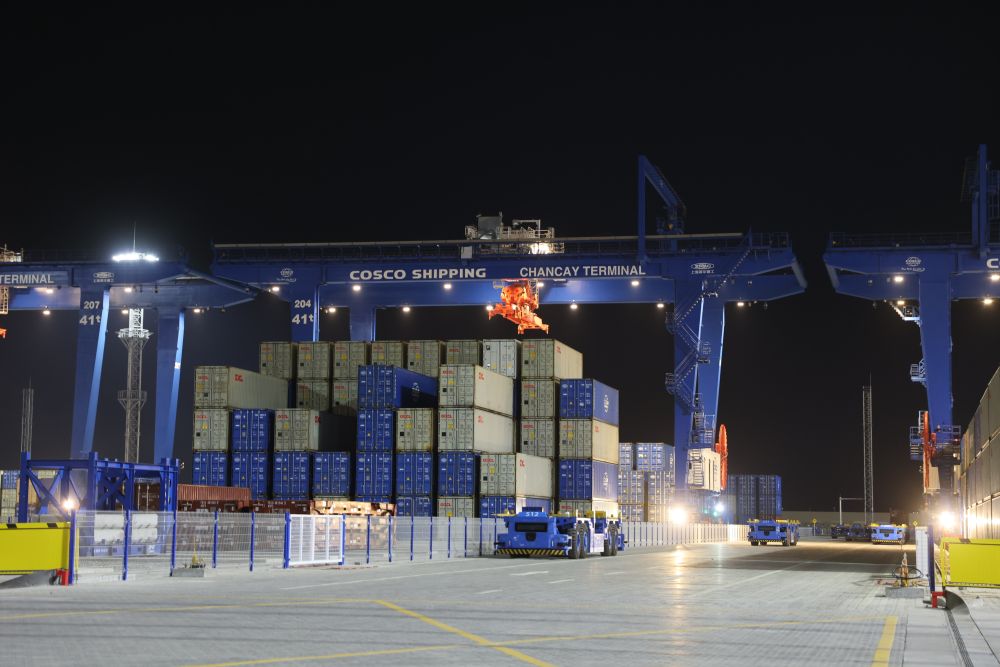 通過(guò)大屏幕連線,兩國(guó)元首共同下達(dá)開(kāi)港指令。利馬以北80公里的錢凱港,在夜幕中開(kāi)啟了港口作業(yè)。
