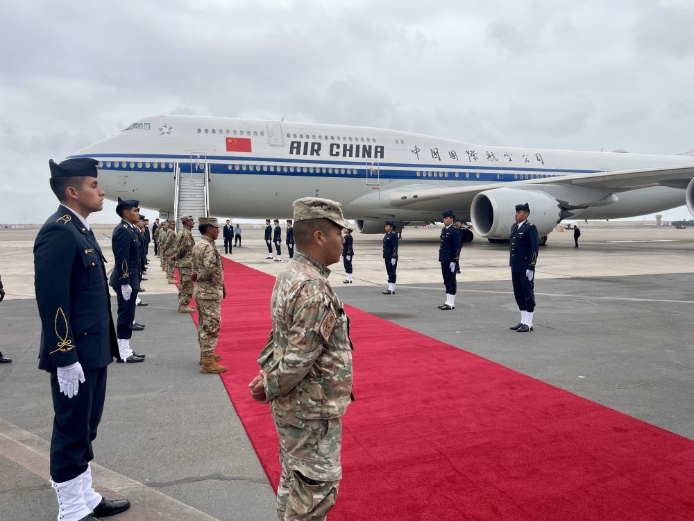 當?shù)貢r間11月17日,國家主席習近平乘專機離開秘魯利馬。