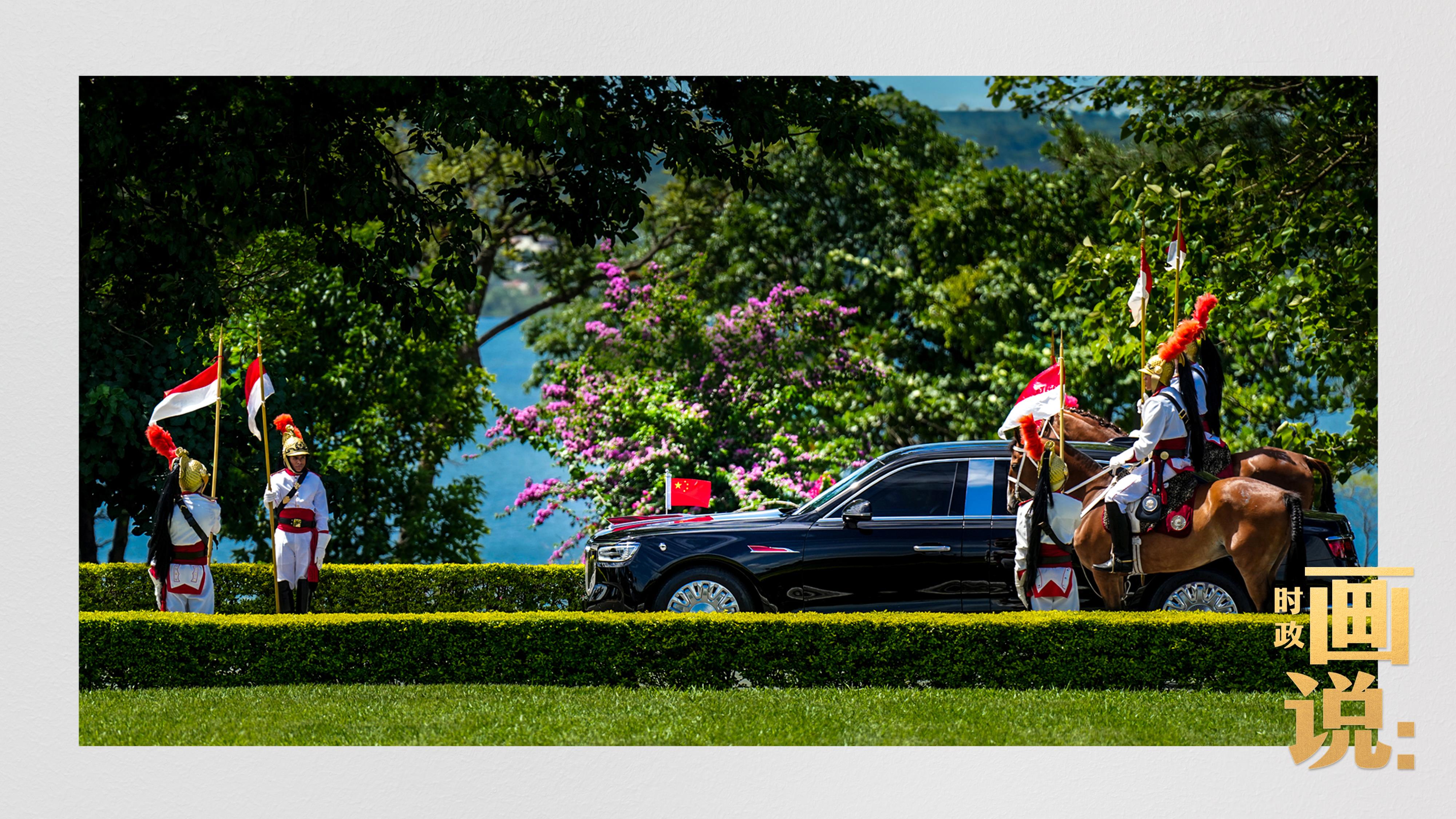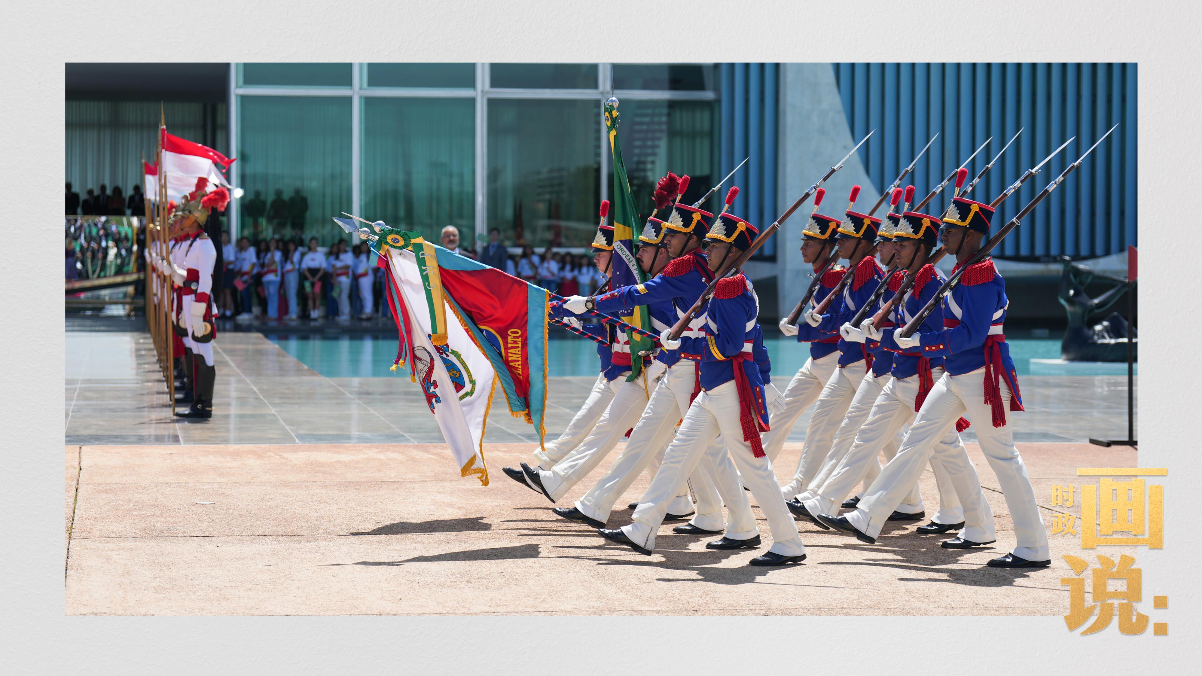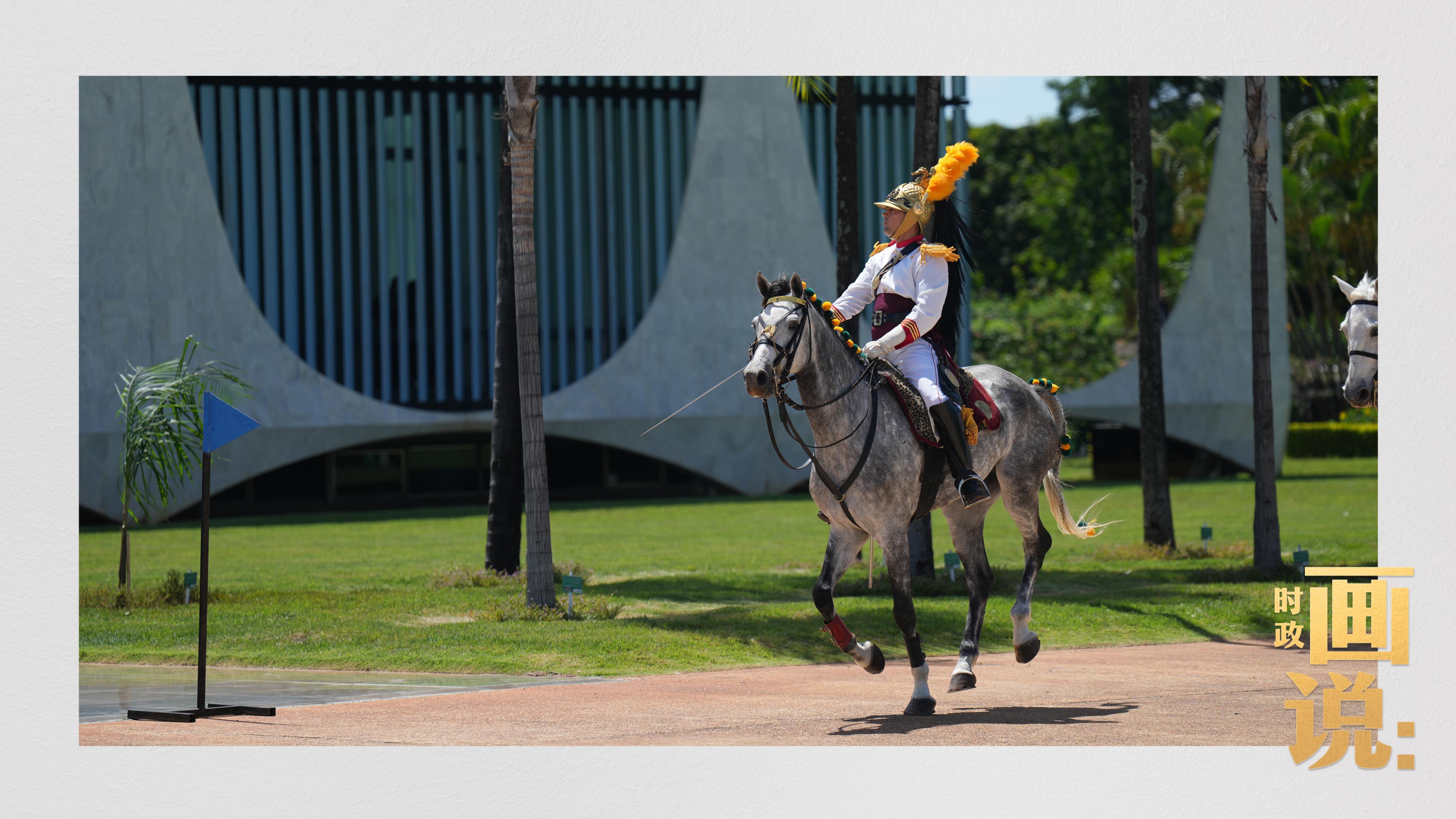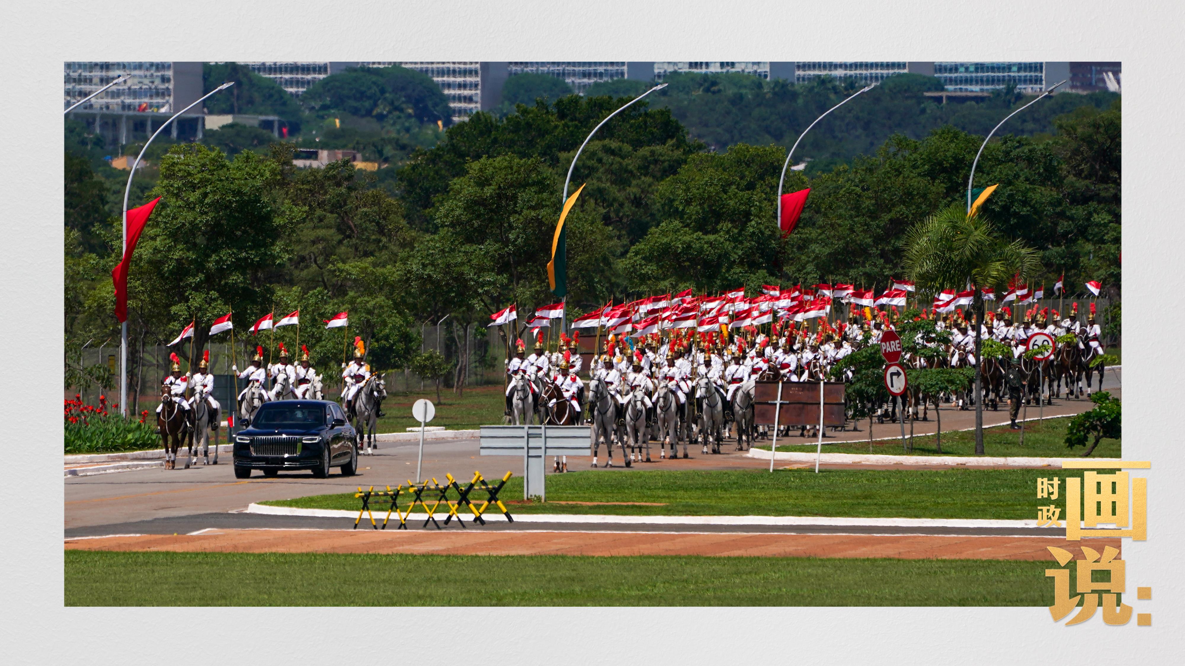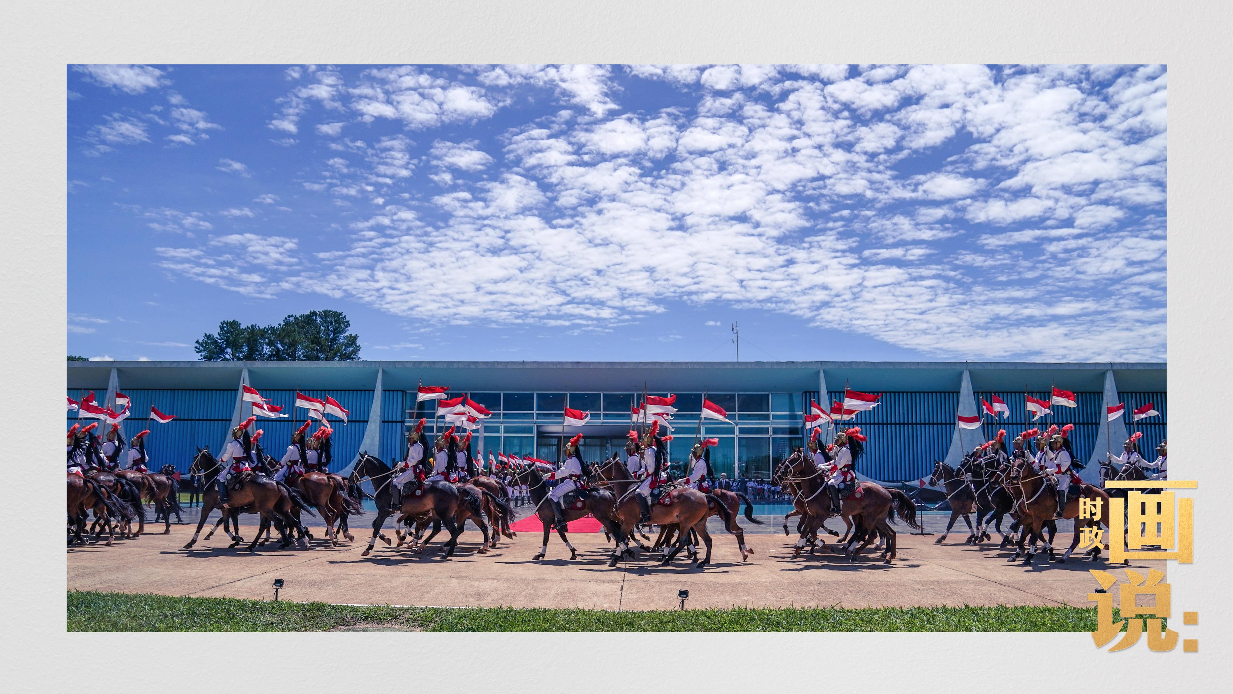 騎兵護衛(wèi)習(xí)近平主席專車抵達儀式現(xiàn)場,巴西藝術(shù)家用中文深情唱響中國經(jīng)典民歌《我的祖國》,現(xiàn)場氣氛隆重?zé)崃摇?/p>