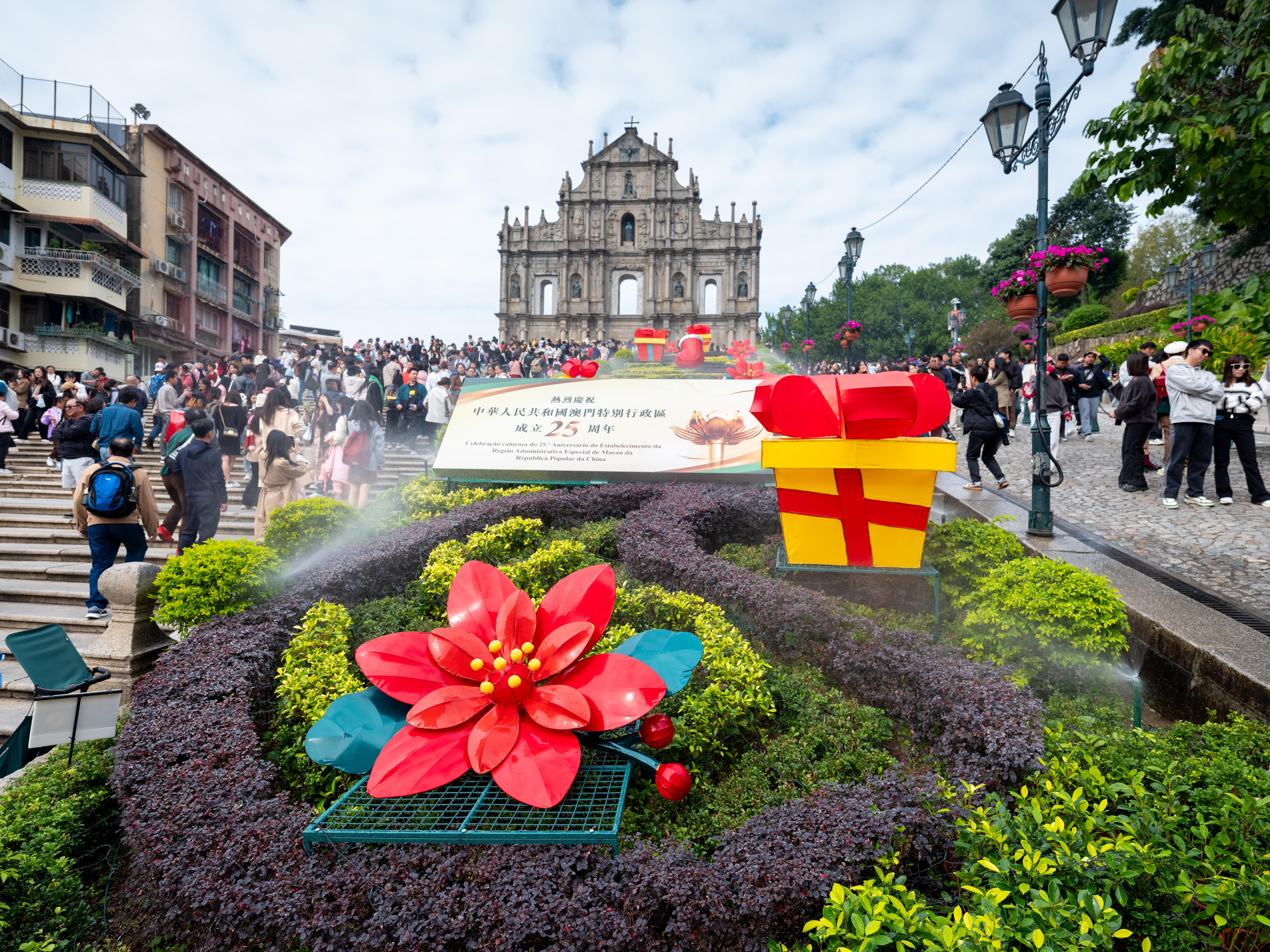 連日來(lái),澳門大街小巷精心裝扮,喜迎澳門回歸祖國(guó)25周年。