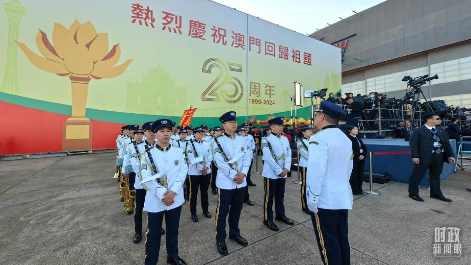 △澳門警察樂隊(duì)靜候習(xí)主席到來。(總臺(tái)央視記者段德文拍攝)