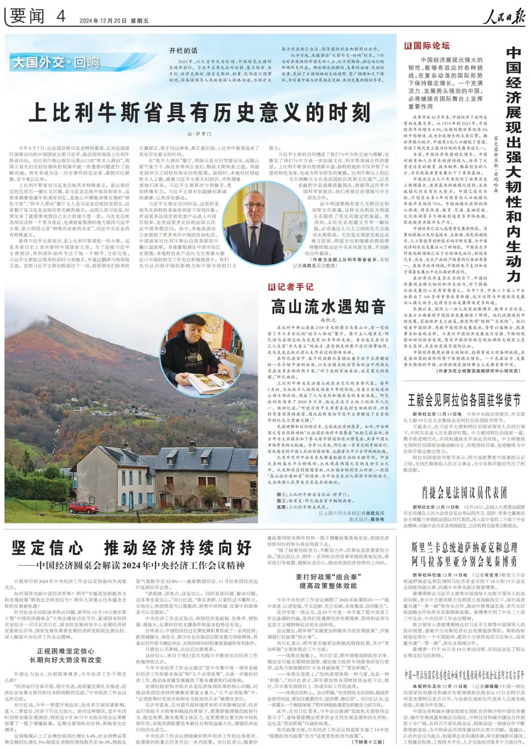 今年5月7日,應(yīng)法國總統(tǒng)馬克龍?zhí)貏e邀請,正對法國進(jìn)行國事訪問的中國國家主席習(xí)近平,赴法國西南部上比利牛斯省訪問。在比利牛斯山圖爾馬萊山口的“牧羊人驛站”,兩國元首夫婦在輕松愉快的氛圍中就一些重要問題進(jìn)行了戰(zhàn)略溝通。我有幸成為這一歷史事件的見證者,感到無比驕傲,至今難以忘懷。