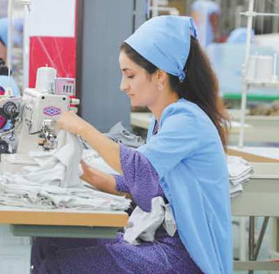 在中企投資的丹加拉農(nóng)業(yè)紡織產(chǎn)業(yè)園,當?shù)毓と苏谶M行成衣縫紉。本報記者 胡澤曦攝