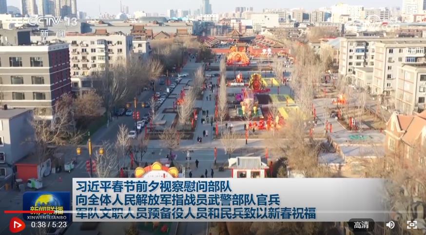 在中華民族傳統(tǒng)節(jié)日春節(jié)來臨之際,中共中央總書記、國家主席、中央軍委主席習近平24日到北部戰(zhàn)區(qū)機關視察慰問,通過視頻看望基層官兵,檢查部隊戰(zhàn)備值班和執(zhí)行任務情況,代表黨中央和中央軍委,向全體人民解放軍指戰(zhàn)員、武警部隊官兵、軍隊文職人員、預備役人員和民兵致以誠摯問候和新春祝福。