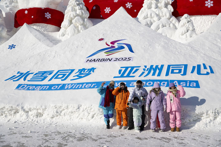 時隔近30年,哈爾濱再度與亞冬會結緣。松花江北岸的冰雪大世界里,中國天壇祈年殿遙對新加坡魚尾獅,印度泰姬陵“遇見”卡塔爾盧塞爾體育場……亞奧理事會成員國家和地區(qū)的地標景觀,以冰雪之姿與游客見面,一幅冰雪盛會的美麗圖卷徐徐展開。
