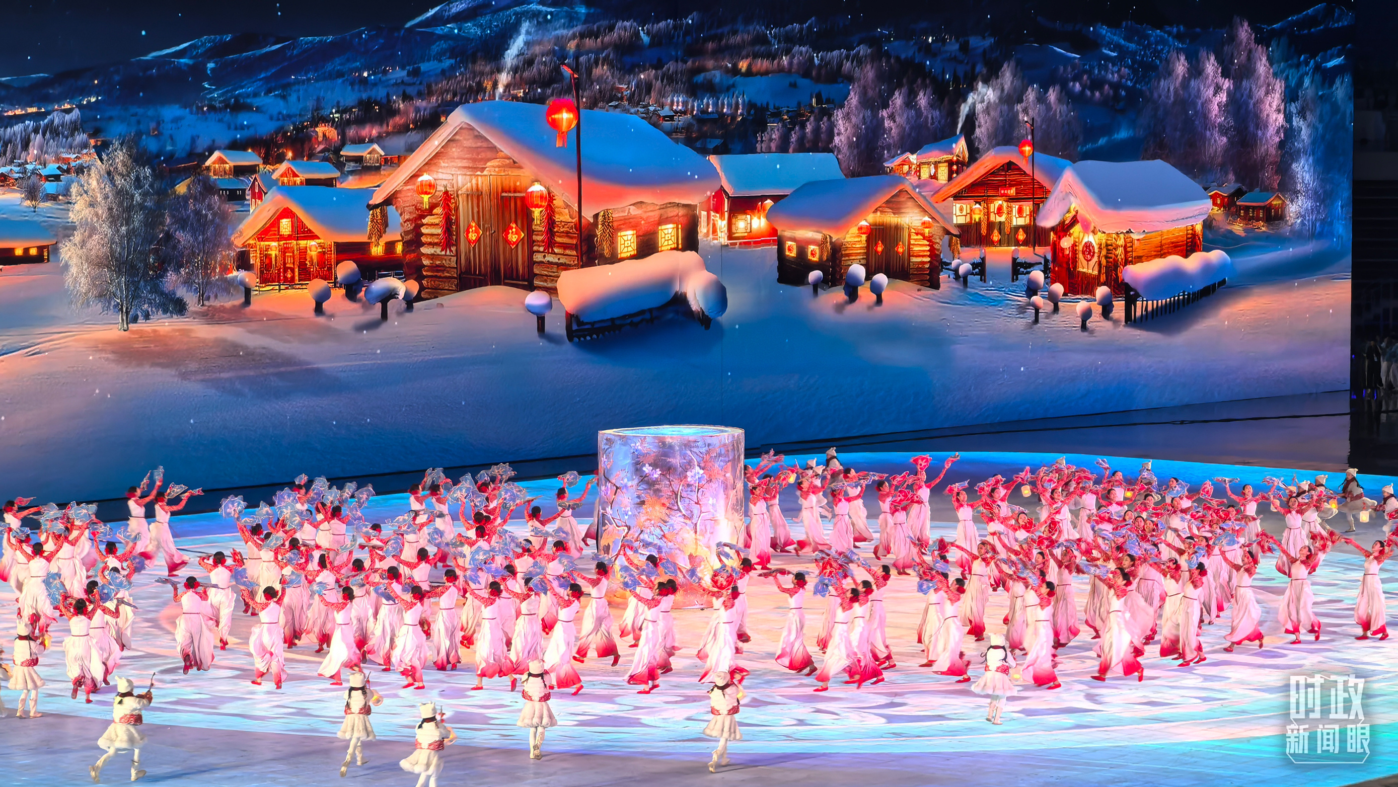 文藝表演分為上篇《熾熱冰雪》、中篇《燃情時(shí)速》、下篇《山高水長(zhǎng)》,通過《長(zhǎng)歌頌冰河》《榮光耀未來》《馳騁天地間》《璀璨嘉年華》《攜手情久長(zhǎng)》《萬里共和鳴》等節(jié)目,展現(xiàn)化“極寒”為“極美”“極燃”“極暖”的意蘊(yùn)。