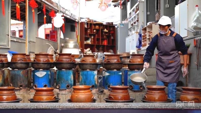 制作盬子雞的盬子,來自當(dāng)?shù)厥〖?jí)非物質(zhì)文化遺產(chǎn)代表性傳承人母先才的陶藝館。2014年,在政府的幫扶下,母先才依托傳統(tǒng)技藝開設(shè)了陶藝館。現(xiàn)在,他不僅把原來的土窯改成了更加環(huán)保的電窯,還把工坊變?yōu)榧铺铡⒀袑W(xué)、餐飲為一體的陶藝館,受到游客歡迎。