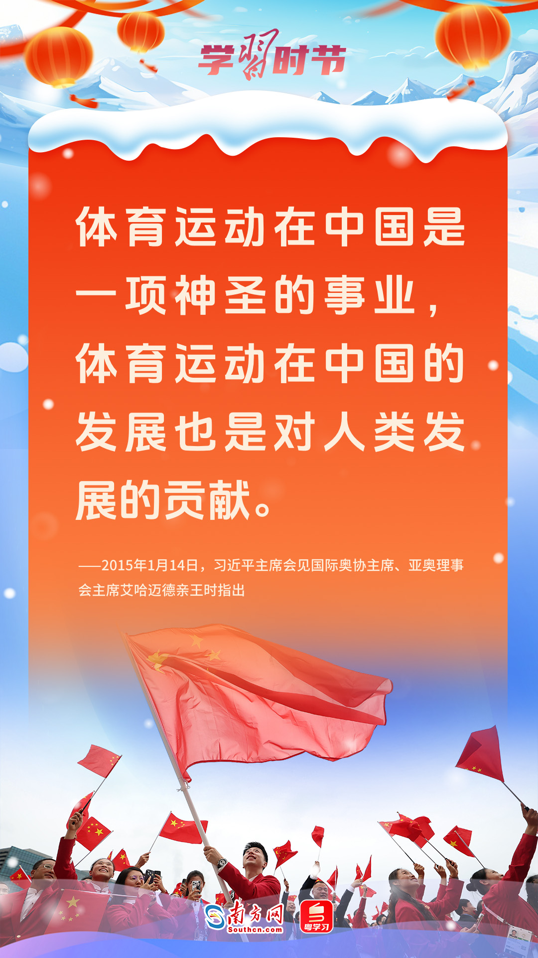 體育是增進(jìn)人民友誼的紐帶,習(xí)近平總書記多次強(qiáng)調(diào)以體育促進(jìn)團(tuán)結(jié)與和平,推動(dòng)國(guó)之交、民相親。這個(gè)元宵節(jié),讓我們一起重溫習(xí)近平總書記的深刻話語,以體育精神匯聚團(tuán)結(jié)和平力量。