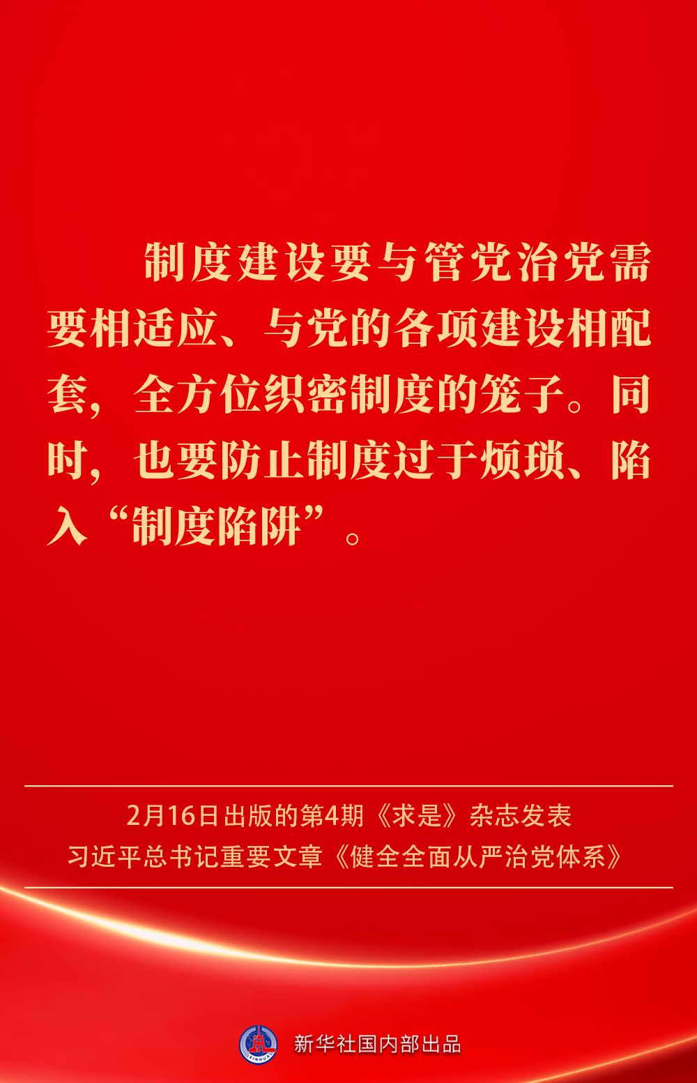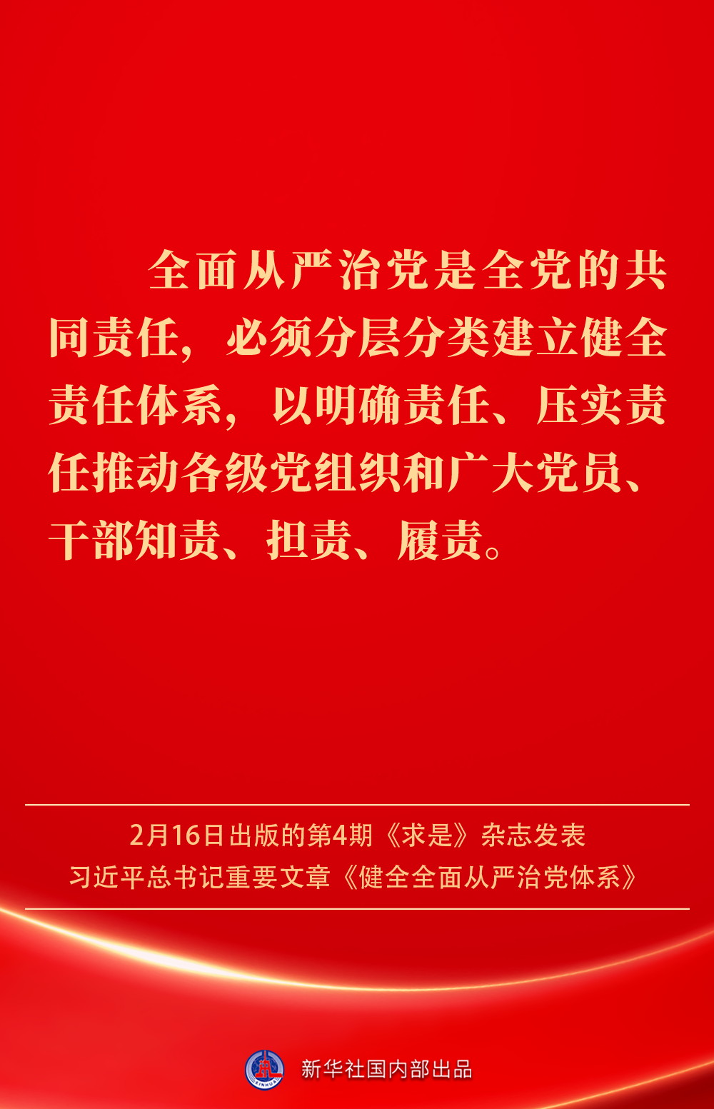2月16日出版的第4期《求是》雜志發(fā)表習(xí)近平總書記重要文章《健全全面從嚴(yán)治黨體系》。如何進(jìn)一步健全要素齊全、功能完備、科學(xué)規(guī)范、運行高效的全面從嚴(yán)治黨體系?習(xí)近平總書記闡明要旨——