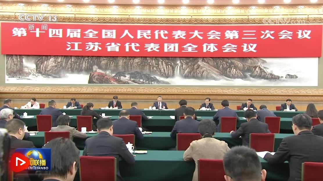 在聽取大家發(fā)言后,習(xí)近平作了發(fā)言。他首先表示贊成政府工作報(bào)告,對(duì)江蘇工作予以肯定,希望江蘇落實(shí)好挑大梁的責(zé)任,努力取得新的更大成績。