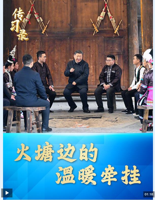 3月17日,習近平總書記來到貴州省黔東南州黎平縣肇興侗寨考察調研。信團鼓樓內,一方火塘邊,總書記同村干部和村民代表圍坐一起,共話鄉(xiāng)村全面振興。