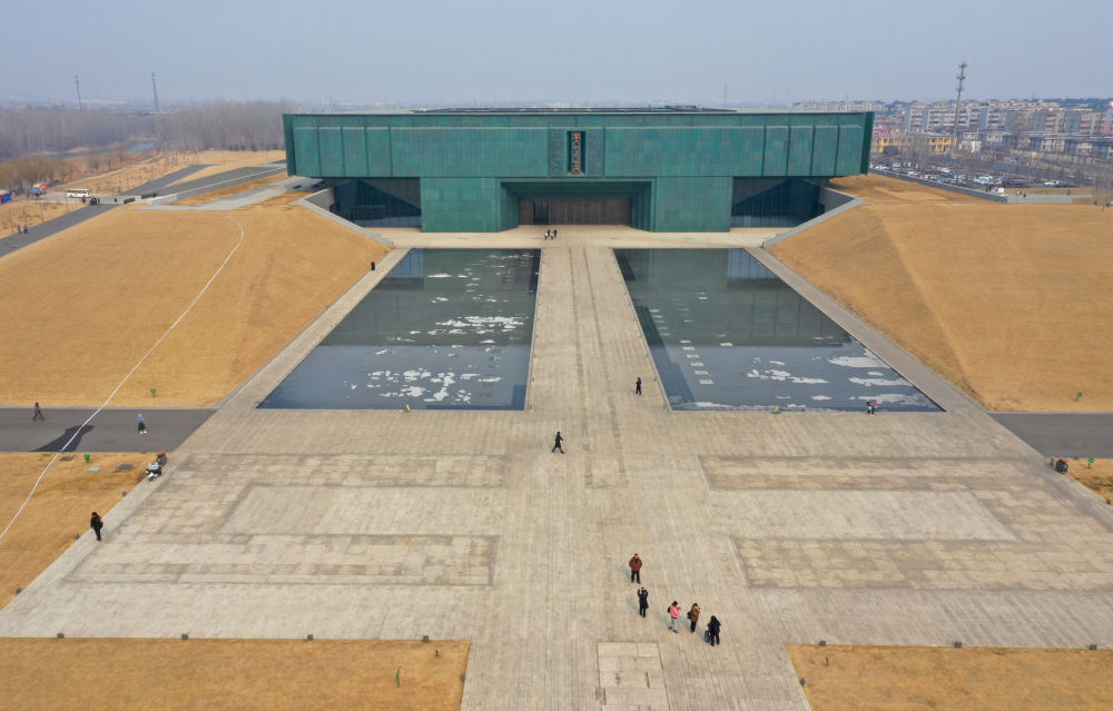 “商邑翼翼,四方之極?!蔽挥谔猩綎|麓的河南安陽小屯村一帶,是殷墟遺址所在地。三千多年前,繁盛的城市文明、舉世矚目的文字文明以及高度發(fā)展的手工業(yè)等,共同構(gòu)筑了早期中國(guó)的華彩篇章。2024年2月,殷墟博物館新館正式開館,成為首個(gè)全景式展現(xiàn)商文明的國(guó)家重大考古專題博物館(2025年2月21日攝,無人機(jī)照片)。