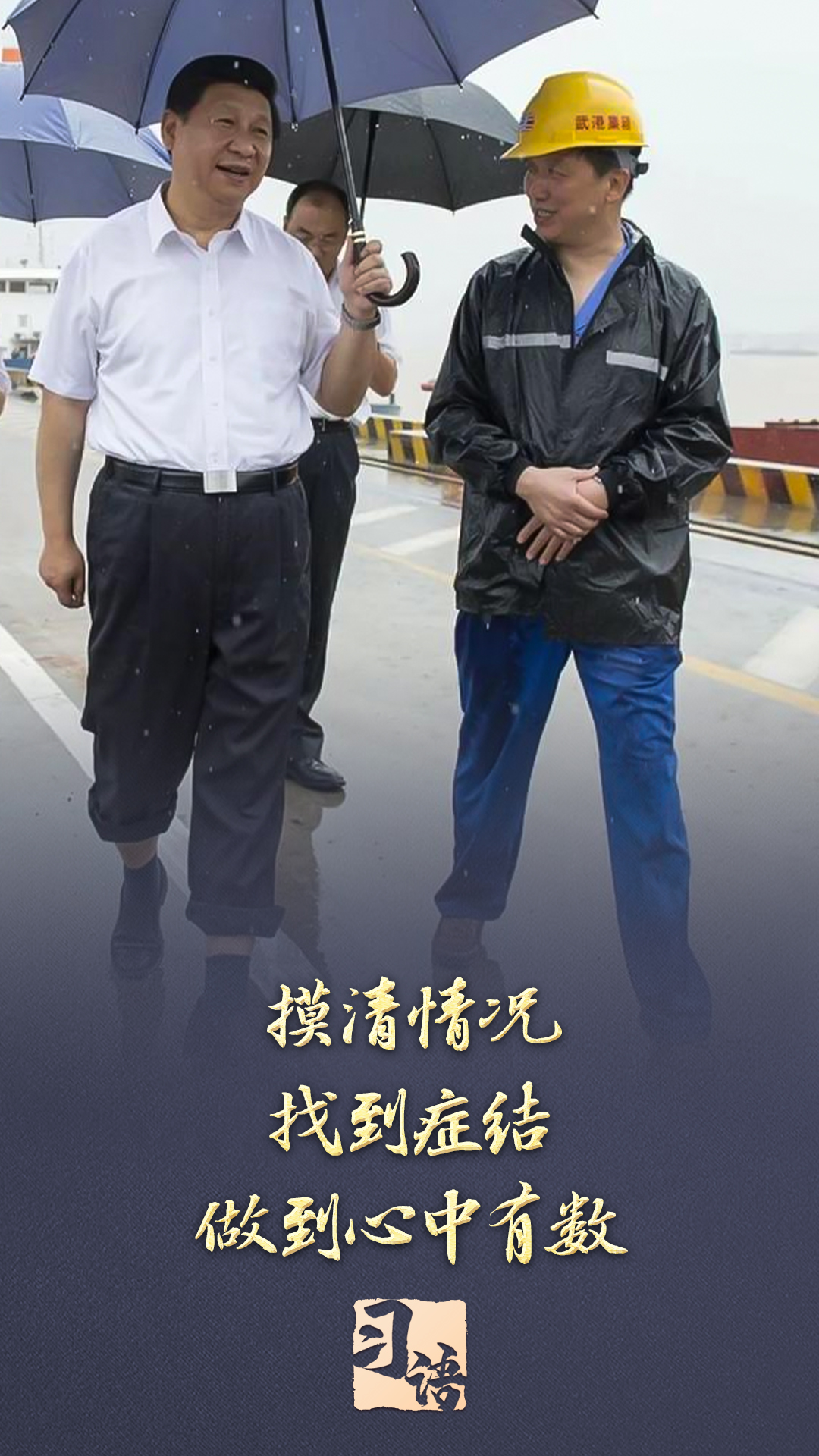 2013年7月,習近平總書記冒雨來到湖北武漢新港陽邏集裝箱港區(qū)考察,他卷起褲腿,打著雨傘,蹚著積水邊走邊看邊問。兩天后,在武漢主持召開部分省市負責人座談會時,習近平總書記強調:“研究、思考、確定全面深化改革的思路和重大舉措,刻舟求劍不行,閉門造車不行,異想天開更不行,必須進行全面深入的調查研究?!?/p>