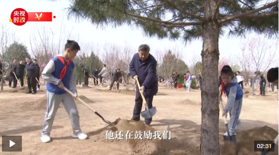 植樹期間,習近平詢問孩子們的學習生活和勞動鍛煉情況,并同在場的干部群眾親切交談。