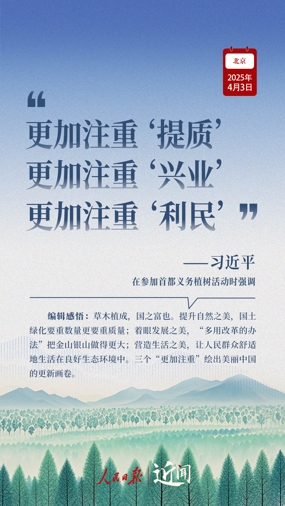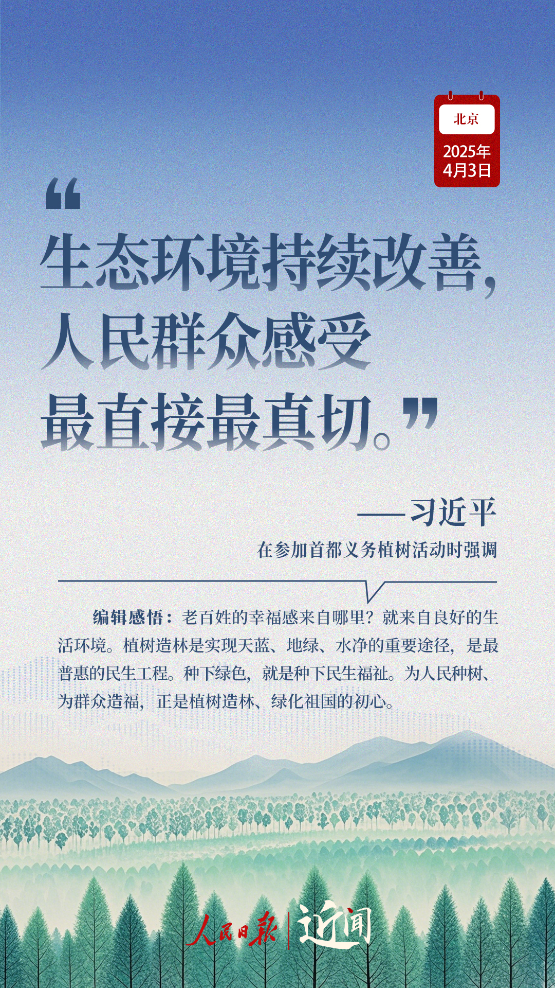 “生態(tài)環(huán)境持續(xù)改善,人民群眾感受最直接最真切。”“義務(wù)植樹是全民行動,要一代接著一代干下去?!痹谥矘洮F(xiàn)場,從這些話語讀懂一份堅(jiān)持、一種情懷。