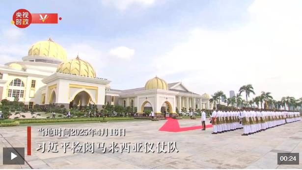 當(dāng)?shù)貢r(shí)間4月16日上午,國家主席習(xí)近平檢閱馬來西亞儀仗隊(duì)。
