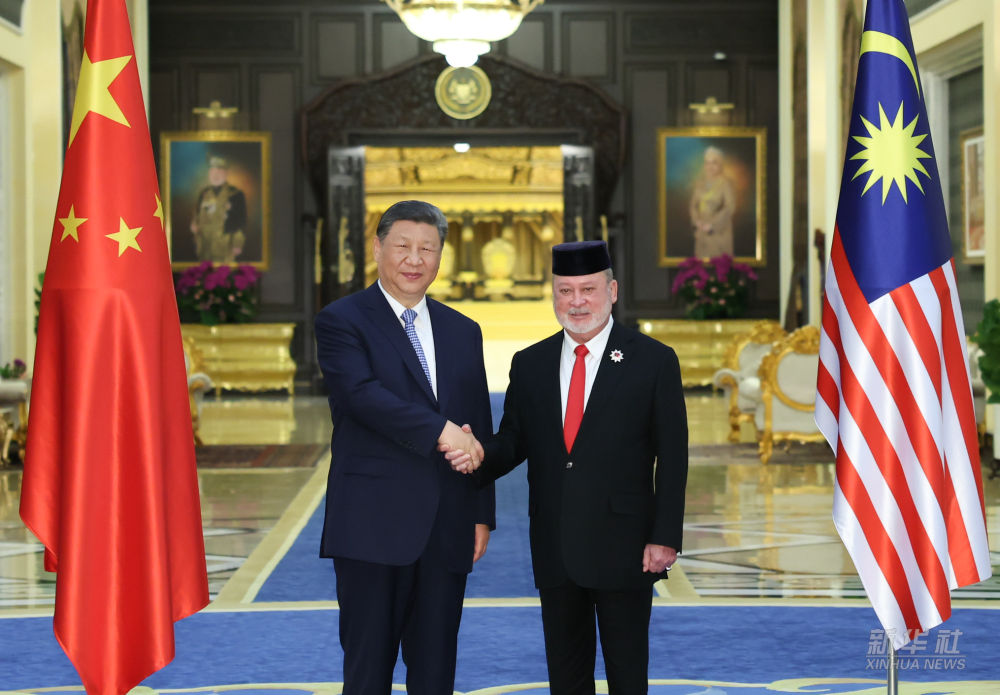 4月16日上午,馬來西亞最高元首易卜拉欣在馬來西亞國家王宮同中國國家主席習(xí)近平舉行會見。