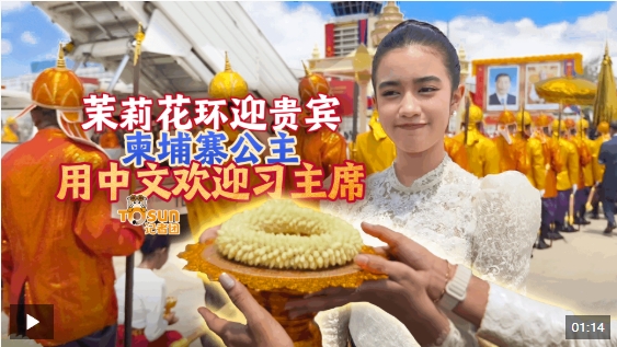 柬埔寨王室珍娜公主向習(xí)近平獻(xiàn)上茉莉花手環(huán)。