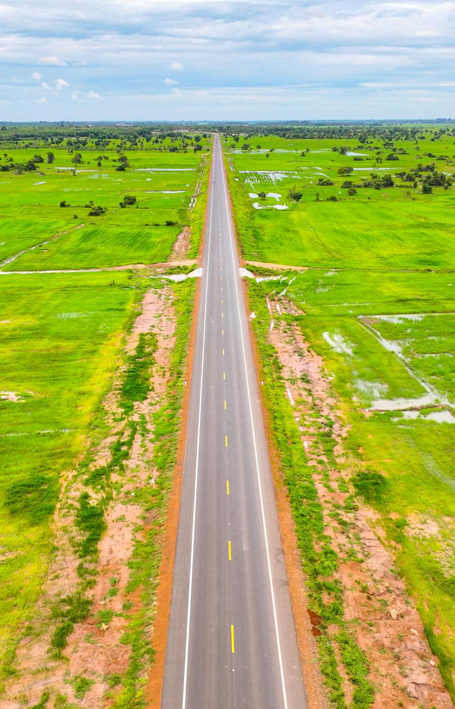 這是2024年7月14日在柬埔寨特本克蒙省拍攝的71C號(hào)國(guó)家公路(無人機(jī)照片)。新華社發(fā)(尼多拉攝)