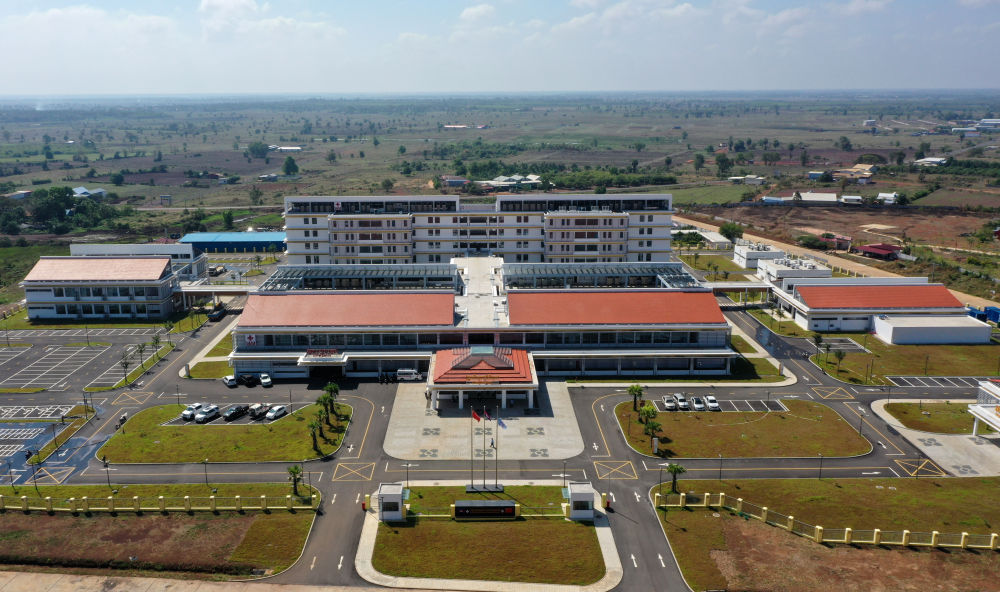 2022年2月17日在柬埔寨特本克蒙省新區(qū)拍攝的中國(guó)援柬埔寨特本克蒙省醫(yī)院。