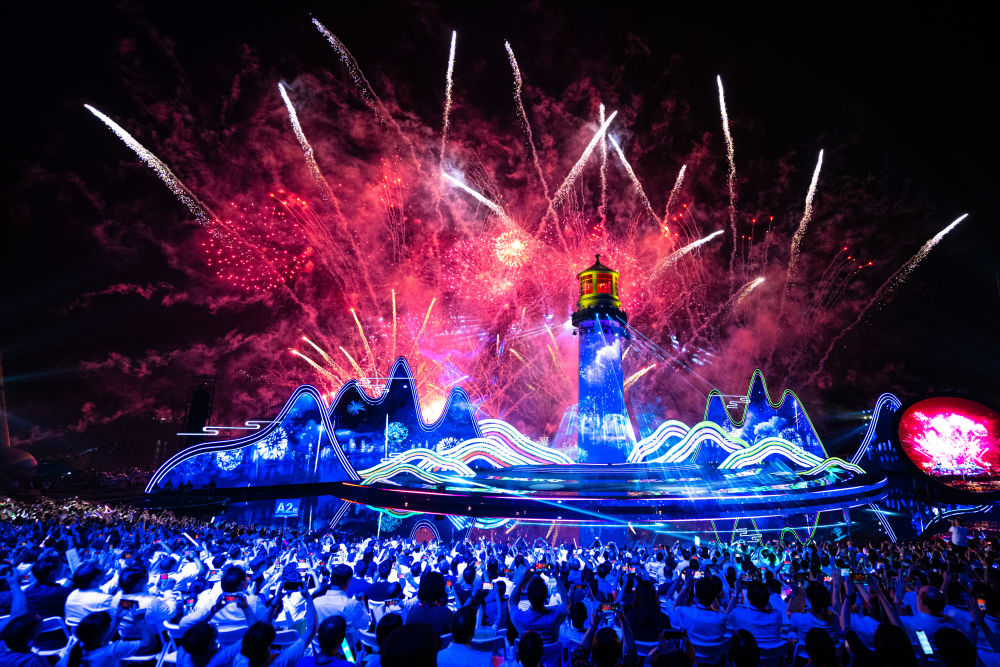 2023年9月16日,第十四屆中國長江三峽國際旅游節(jié)在湖北宜昌市燈塔廣場開幕,這是觀眾在開幕式現(xiàn)場觀看表演。生態(tài)搭臺、文旅唱戲,長江三峽國際旅游節(jié)是近些年三峽庫區(qū)把綠水青山轉(zhuǎn)變成“金山銀山”的生動寫照。