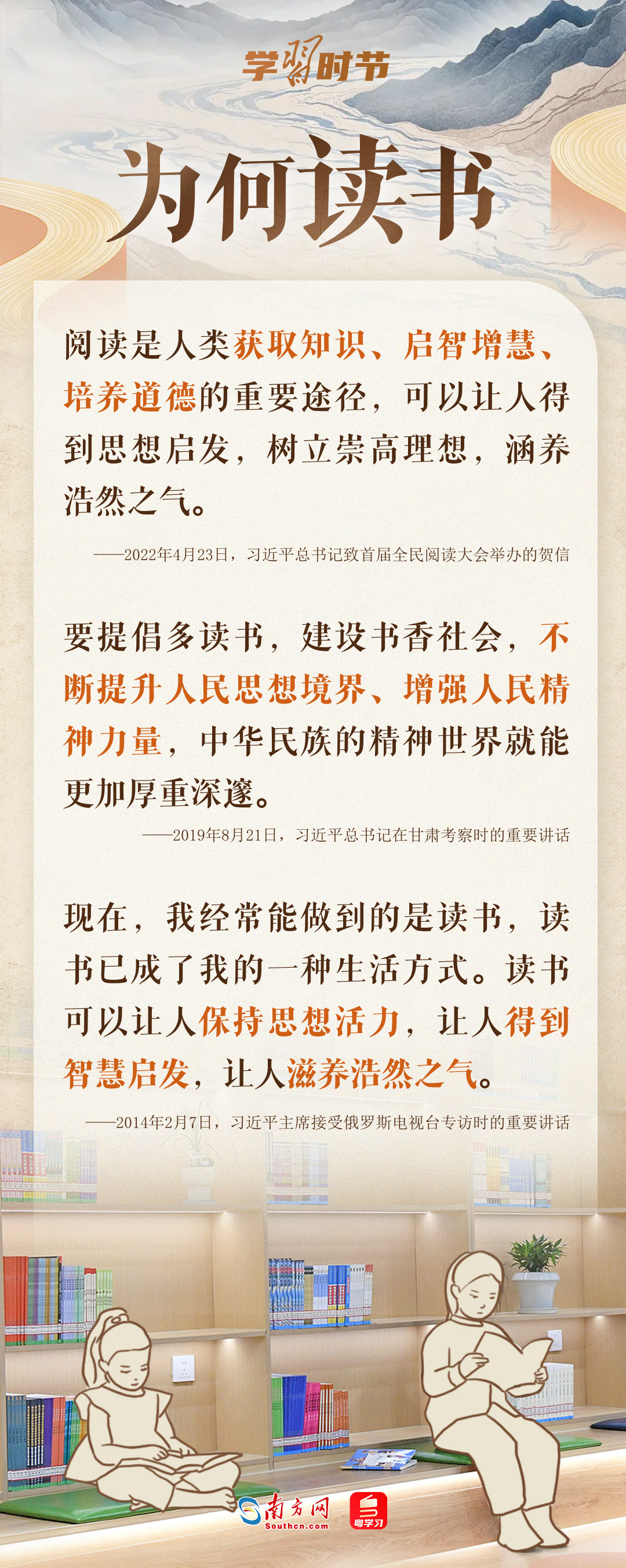 4月23日是第30個(gè)世界讀書(shū)日。我們?yōu)楹我x書(shū)?應(yīng)如何讀書(shū)?讀些什么書(shū)?讓我們跟隨總書(shū)記的“讀書(shū)指南”,一起“愛(ài)讀書(shū)、讀好書(shū)、善讀書(shū)”。