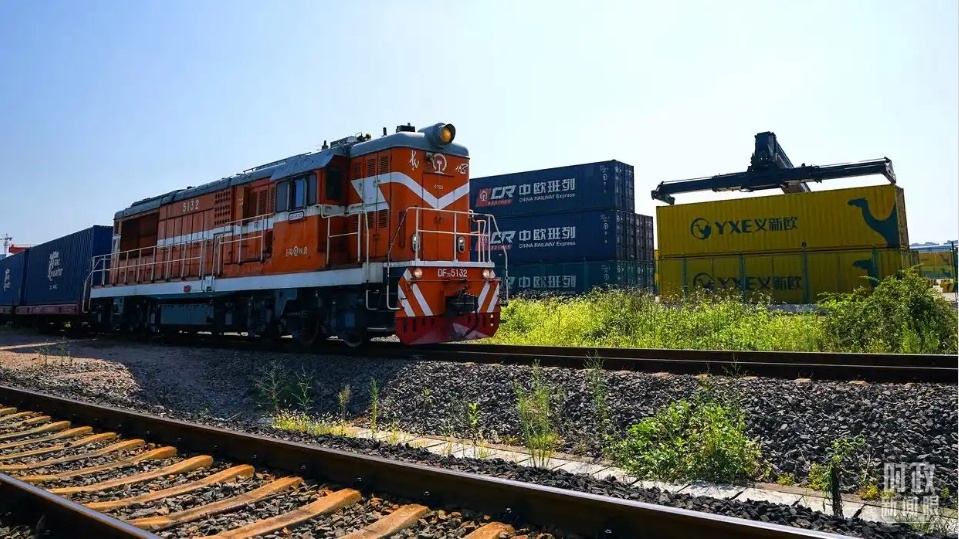 △“義新歐”中歐班列。(總臺(tái)記者李晉拍攝)