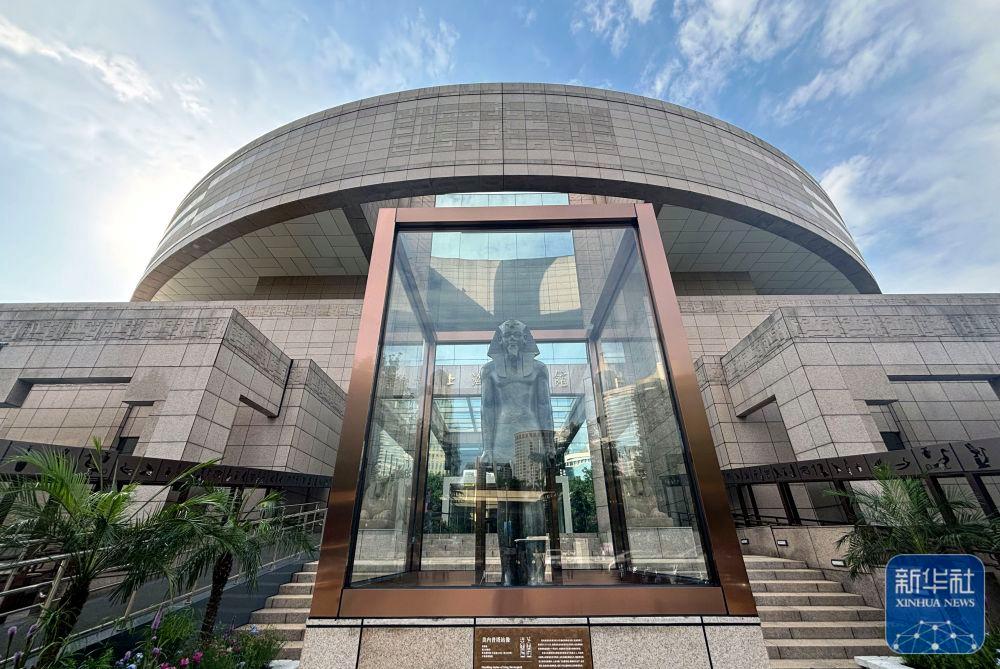 2024年7月17日在上海博物館人民廣場(chǎng)館南門(mén)拍攝的“金字塔之巔:古埃及文明大展”美內(nèi)普塔站像,這是上海博物館首次把文物展品放在室外展出。該展是近20年來(lái)埃及在境外舉辦的最大規(guī)模文物展,其中95%以上的文物是首次來(lái)到亞洲,于2024年7月19日正式向公眾開(kāi)放,將持續(xù)至2025年8月。