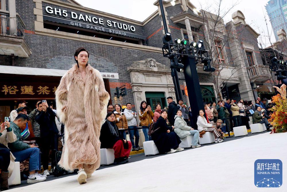 2024年12月7日,模特在“?!づ蓮垐@時(shí)尚文化周”中國(guó)青年設(shè)計(jì)師時(shí)裝秀上展示設(shè)計(jì)師服裝作品。時(shí)裝秀以張園建筑主色調(diào)與設(shè)計(jì)線條為靈感,百年石庫(kù)門(mén)建筑群落為背景,將茂名北路作為T(mén)臺(tái)秀場(chǎng),獨(dú)具上海特色。