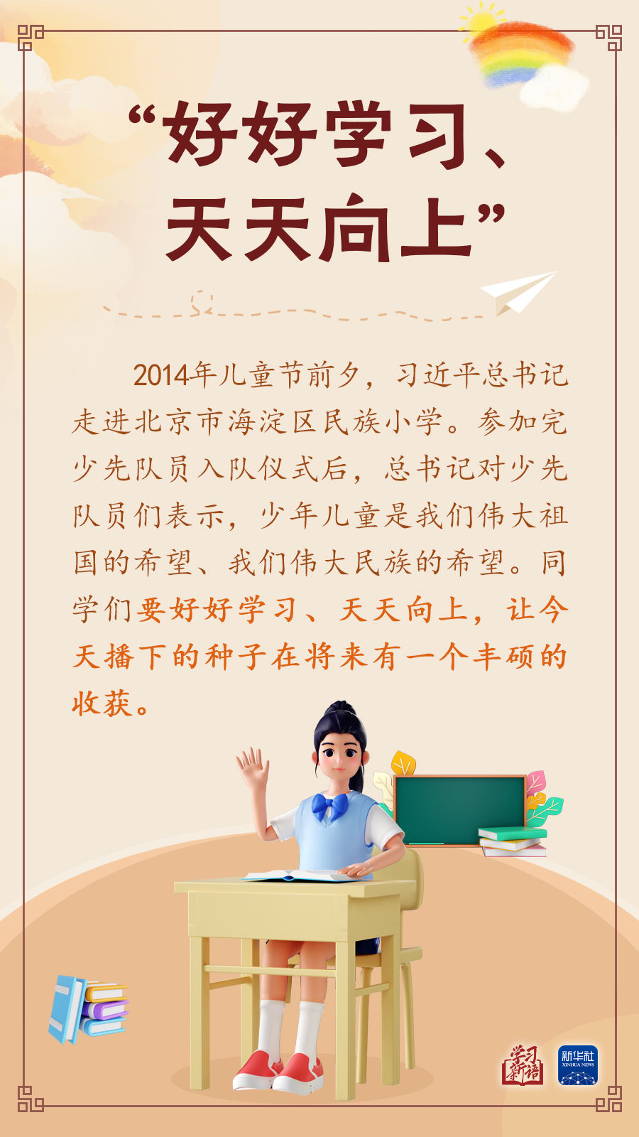 讓孩子們成長得更好,習近平總書記始終牽掛于心。本期“學習新語”,我們擷取總書記關心少年兒童健康成長的一些場景,感悟總書記對“祖國花朵”的真摯關懷和殷切期望。