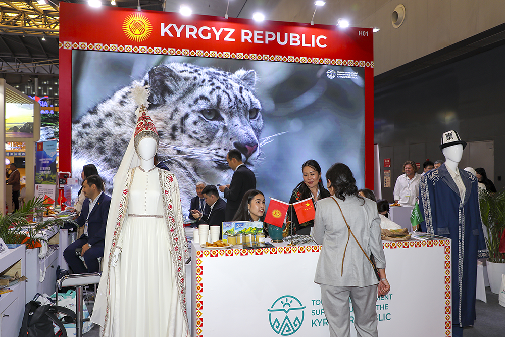 △ 2025年5月27日,2025上海國際旅游交易博覽會在世博展覽館舉行。圖為吉爾吉斯斯坦旅游展臺。