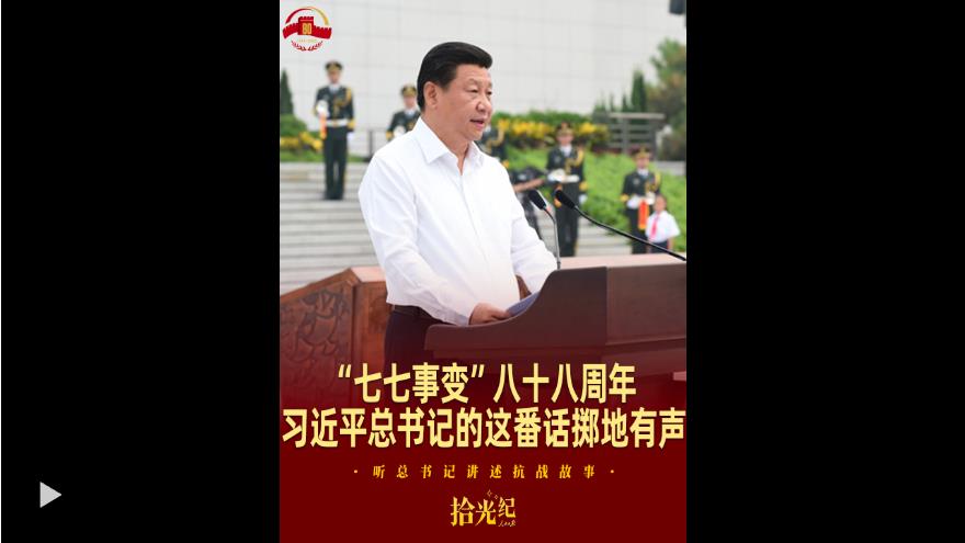 從那時起,“全體中華兒女冒著敵人的炮火共赴國難”。“七七事變”拉開了中華民族全面抗戰(zhàn)的序幕。11年前,習(xí)近平總書記在紀念全民族抗戰(zhàn)爆發(fā)七十七周年儀式上的講話擲地有聲。
