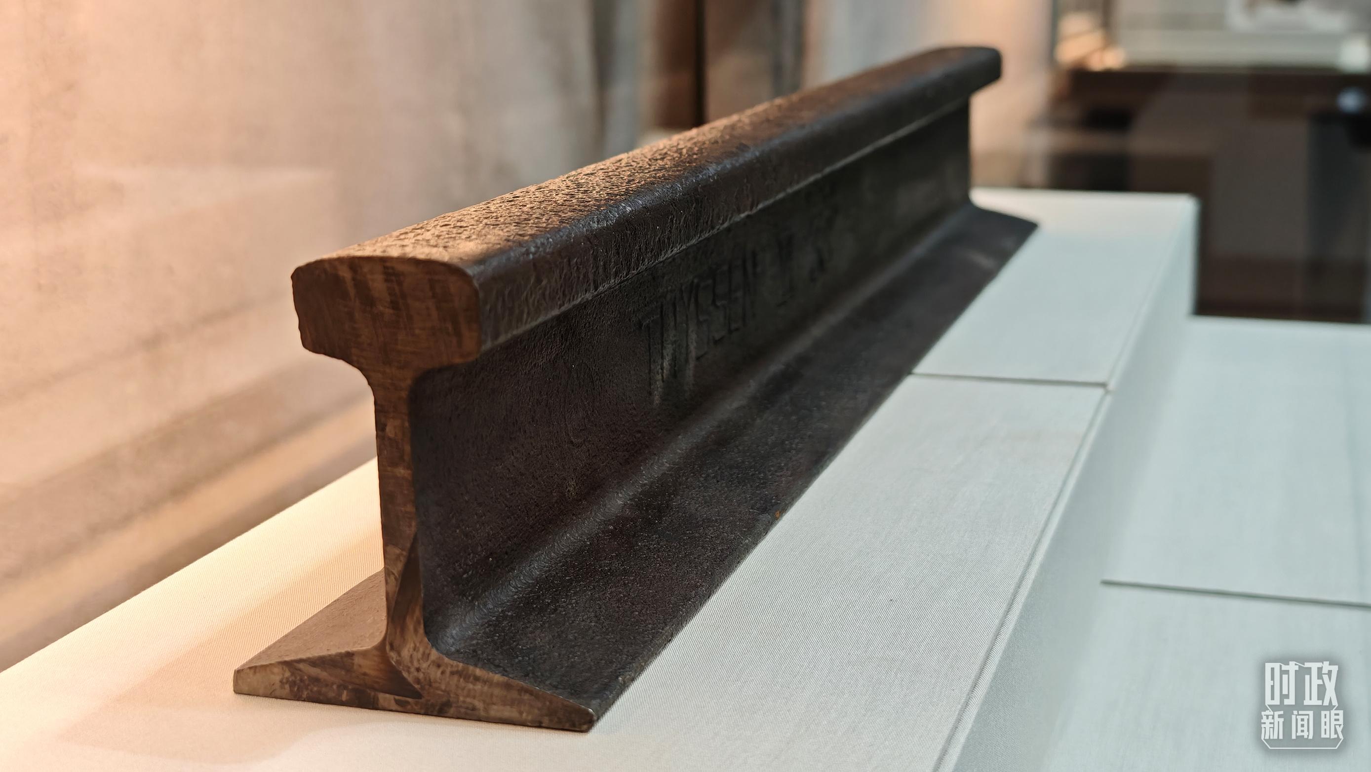 百團大戰(zhàn)紀念館展陳——正太鐵路鐵軌。(總臺央視記者許永松拍攝)