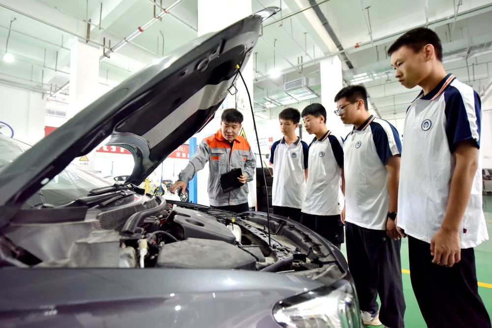 2024年6月7日,河北省邢臺市威縣職業(yè)技術教育中心教師指導學生學習汽車維修技術。近年來,威縣加大職業(yè)技術人才培養(yǎng)力度,通過與企業(yè)聯(lián)合辦學,創(chuàng)新校企合作、定向培養(yǎng)、工學結合等辦學模式,拓寬職業(yè)教育畢業(yè)生就業(yè)渠道。
