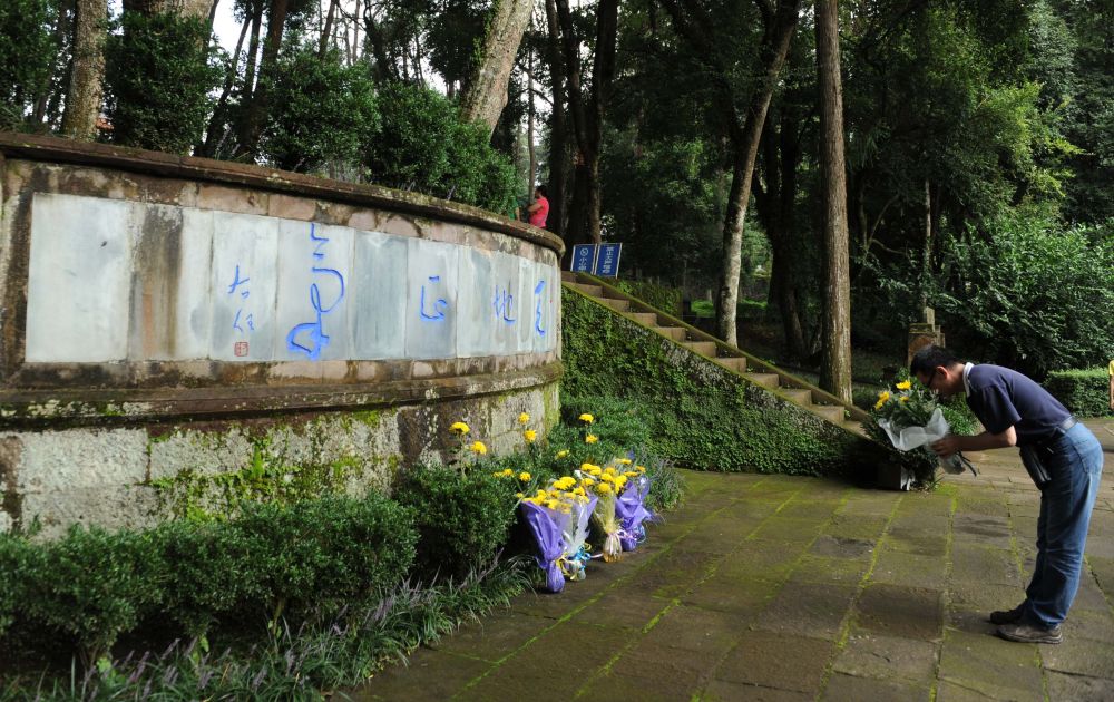 2012年8月15日,云南騰沖各地群眾前往“國(guó)殤墓園”和“騰沖滇西抗戰(zhàn)博物館”等愛(ài)國(guó)主義教育基地,祭奠抗戰(zhàn)先烈。這是一位市民在“國(guó)殤墓園”緬懷英烈。