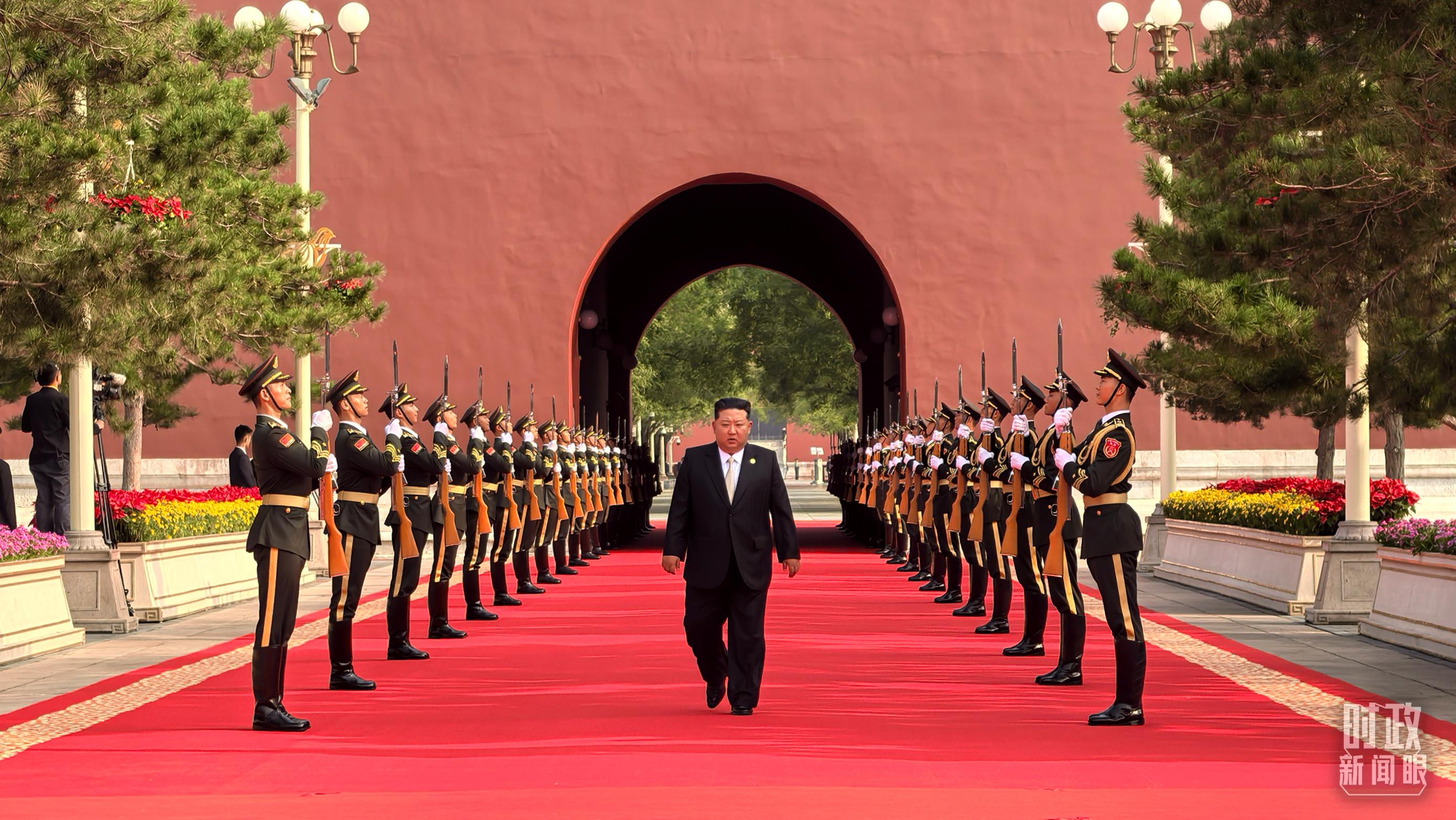 △9月3日上午,金正恩抵達端門外廣場參加迎賓儀式。(總臺央視記者李增仁拍攝)