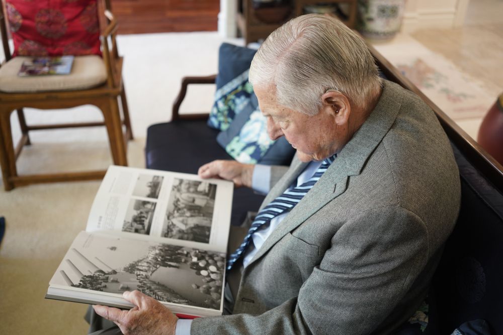 在位于美國舊金山灣區(qū)的家中,耄耋之年的伊斯特布魯克接受新華社記者專訪時,特意翻出了一張日本在“密蘇里”號戰(zhàn)列艦上簽署無條件投降書的老照片,用手指著照片中甲板上軍官站立的一側,“史迪威就在這里”。
