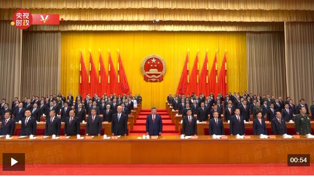 25日上午,新疆維吾爾自治區(qū)成立70周年慶祝大會在新疆人民會堂隆重舉行?,F(xiàn)場全體起立,高唱國歌。
