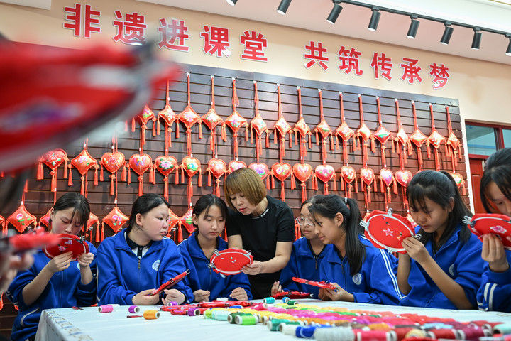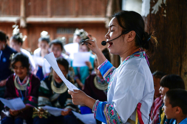 2025年9月26日,內(nèi)蒙古興安盟科右中旗巴彥呼舒第六中學(xué)美術(shù)教師、非遺代表性傳承人吳斯琴(左四)指導(dǎo)學(xué)生刺繡。近年來(lái),內(nèi)蒙古興安盟科爾沁右翼中旗巴彥呼舒第六中學(xué)將當(dāng)?shù)貒?guó)家級(jí)非遺圖什業(yè)圖刺繡引入校園,開(kāi)設(shè)校本課程,并成立興趣社團(tuán),在豐富校園文化生活的同時(shí),讓學(xué)生們近距離感受非遺的魅力,弘揚(yáng)和傳承中華優(yōu)秀傳統(tǒng)文化。隨著國(guó)產(chǎn)動(dòng)畫電影《哪吒之魔童鬧海》不斷刷新中國(guó)影史票房紀(jì)錄,參與電影配樂(lè)的貴州省榕江縣三寶侗寨的楊想妮和“舞樂(lè)蟬歌”團(tuán)隊(duì)為更多人所熟知。樂(lè)團(tuán)成員懷揣“用音樂(lè)傳遞侗族文化,讓世界聽(tīng)見(jiàn)侗族大歌”的共同夢(mèng)想,將侗族大歌推向更廣闊的舞臺(tái)。這是2025年4月22日,楊想妮在貴州省黎平縣肇興鎮(zhèn)廈格侗寨教前來(lái)研學(xué)的孩子們唱侗歌。
