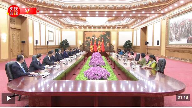 10月14日上午,國家主席習近平在北京人民大會堂會見來華出席全球婦女峰會的斯里蘭卡總理阿馬拉蘇里亞。