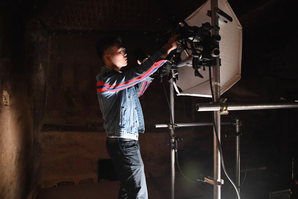 2023年4月25日,敦煌研究院文物數(shù)字化保護團隊圖像采集人員熊業(yè)騰在洞窟內(nèi)調試設備,準備采集壁畫圖像。30多年前,敦煌研究院便嘗試以數(shù)字技術讓古老石窟“芳華永駐”。2016年,“數(shù)字敦煌”資源庫上線,首次向全球免費共享30個敦煌石窟的高清圖像和全景漫游,用戶足不出戶就能欣賞到高清的敦煌文化數(shù)字資源,目前訪問用戶遍布全球78個國家,累計訪問量超過2000萬次。